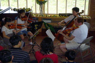 スタジオにて、小学4年、5年、6年、中学1年生による弦楽アンサンブルの演奏と、中学生、高校生達によるカルテット演奏会がありました。