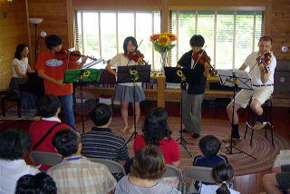 スタジオにて、小学4年、5年、6年、中学1年生による弦楽アンサンブルの演奏と、中学生、高校生達によるカルテット演奏会がありました。