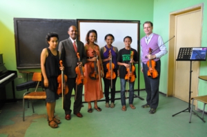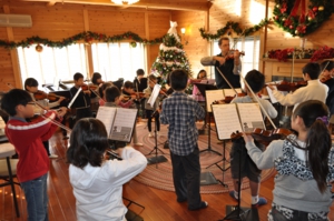 ジュニアストリングアンサンブルメンバー スタジオでの練習風景