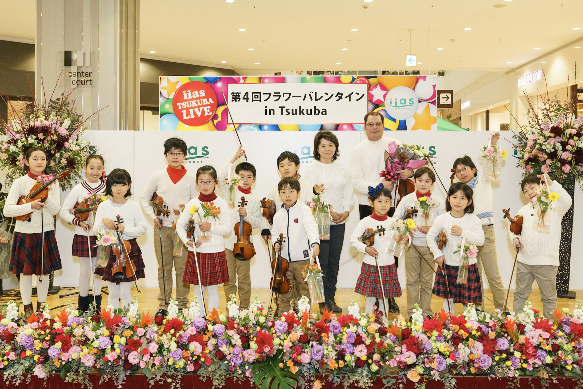 つくば研究学園駅前でのクリスマス点灯式、つくばイオンモールクリスマスやイーアスショッピングモールでのフラワーバレンタインイベントに参加しています。