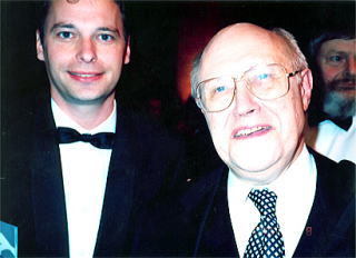 チェリストであり指揮者でもあるロストロボーヴィッチ氏とロンドンでのグラマフォン賞授賞式式典にて